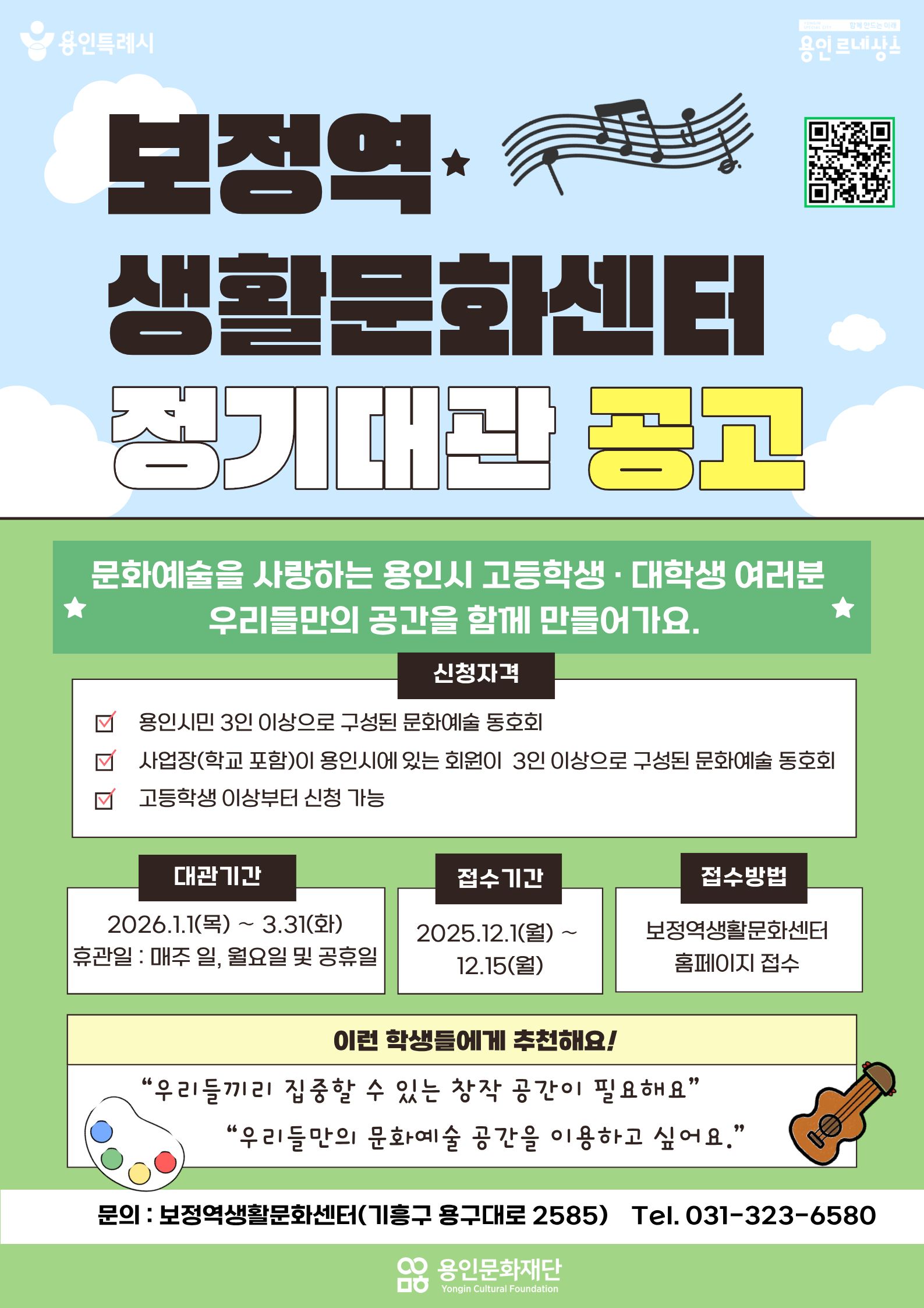 (재)용인문화재단 보정역 생활문화센터 정기대관 안내