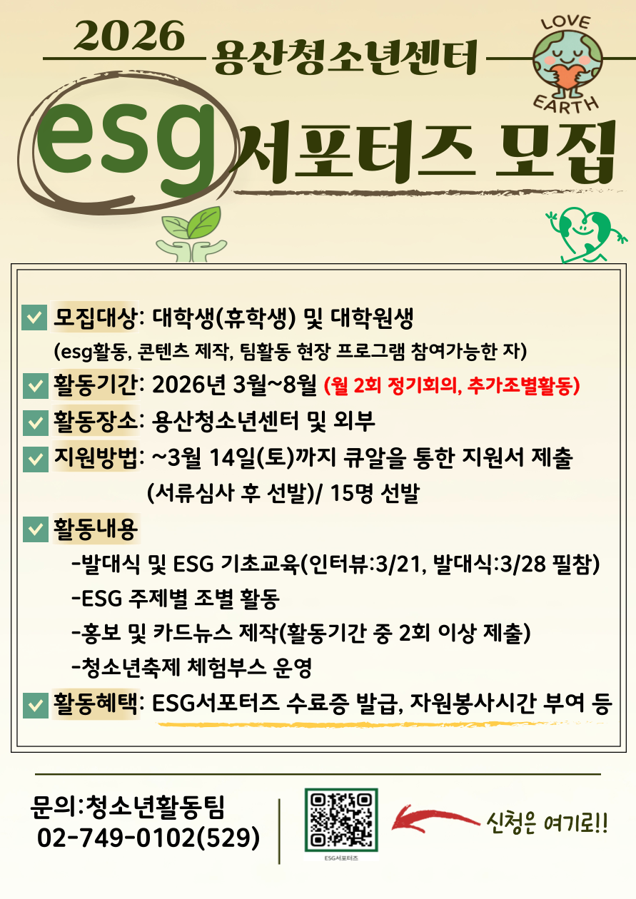 2026년 용산청소년센터 ESG 서포터즈 모집 안내